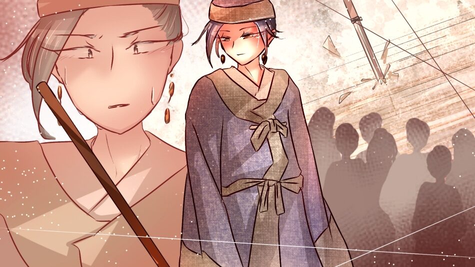 その時、大皇弟(大海人皇子)が長い槍で敷板を突き通した。帝は驚き、大いに怒って、その場で捕らえて害そうとした。